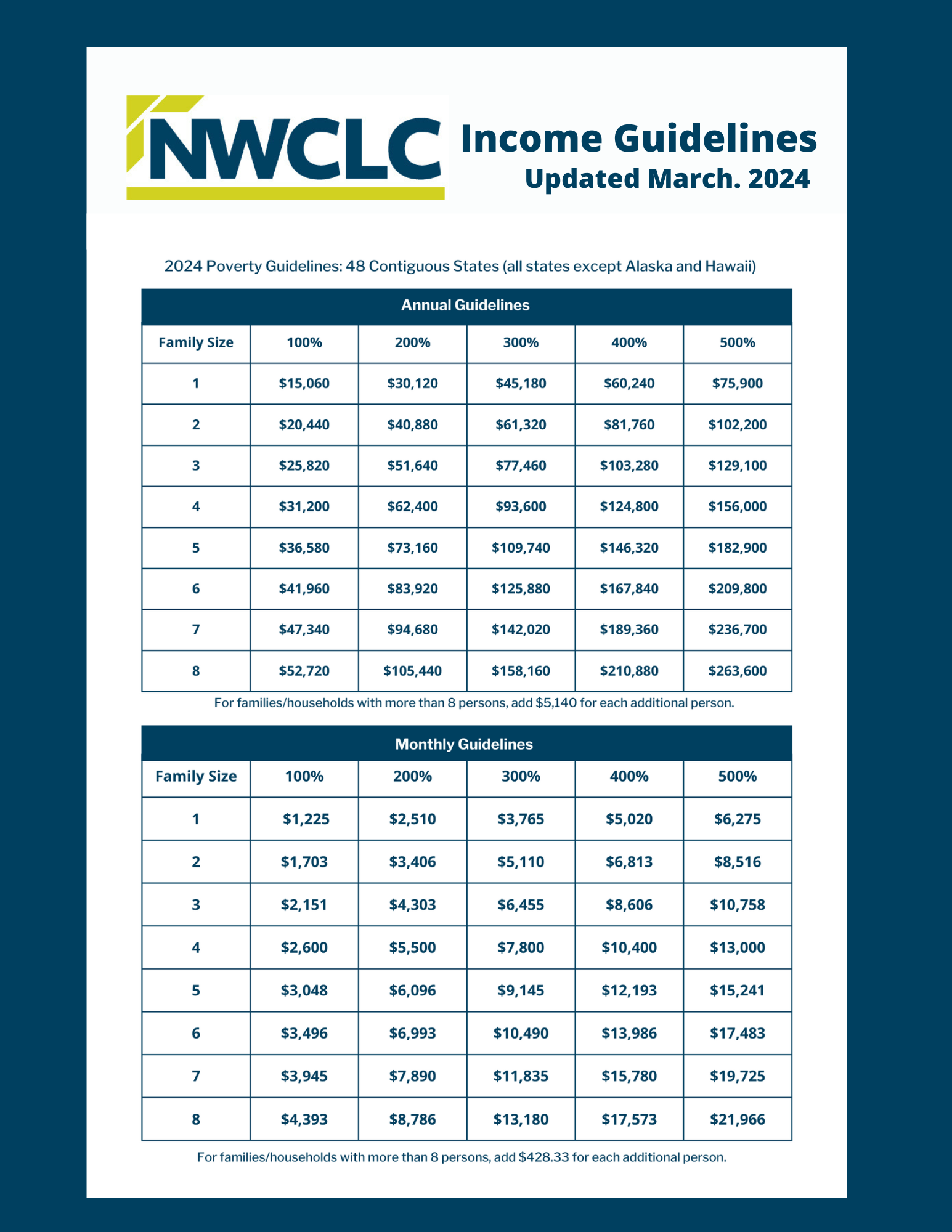 Northwest Consumer Law Center solo puede servir a aquellos que se encuentran dentro de las siguientes pautas: